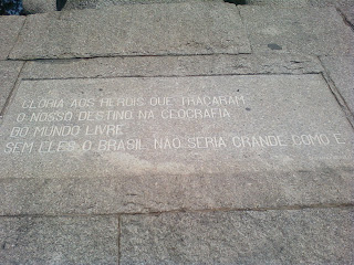 Versos dos poetas Guilherme de Almeida e Cassiano Ricardo lembram as bandeiras em placas nas laterais da escultura.