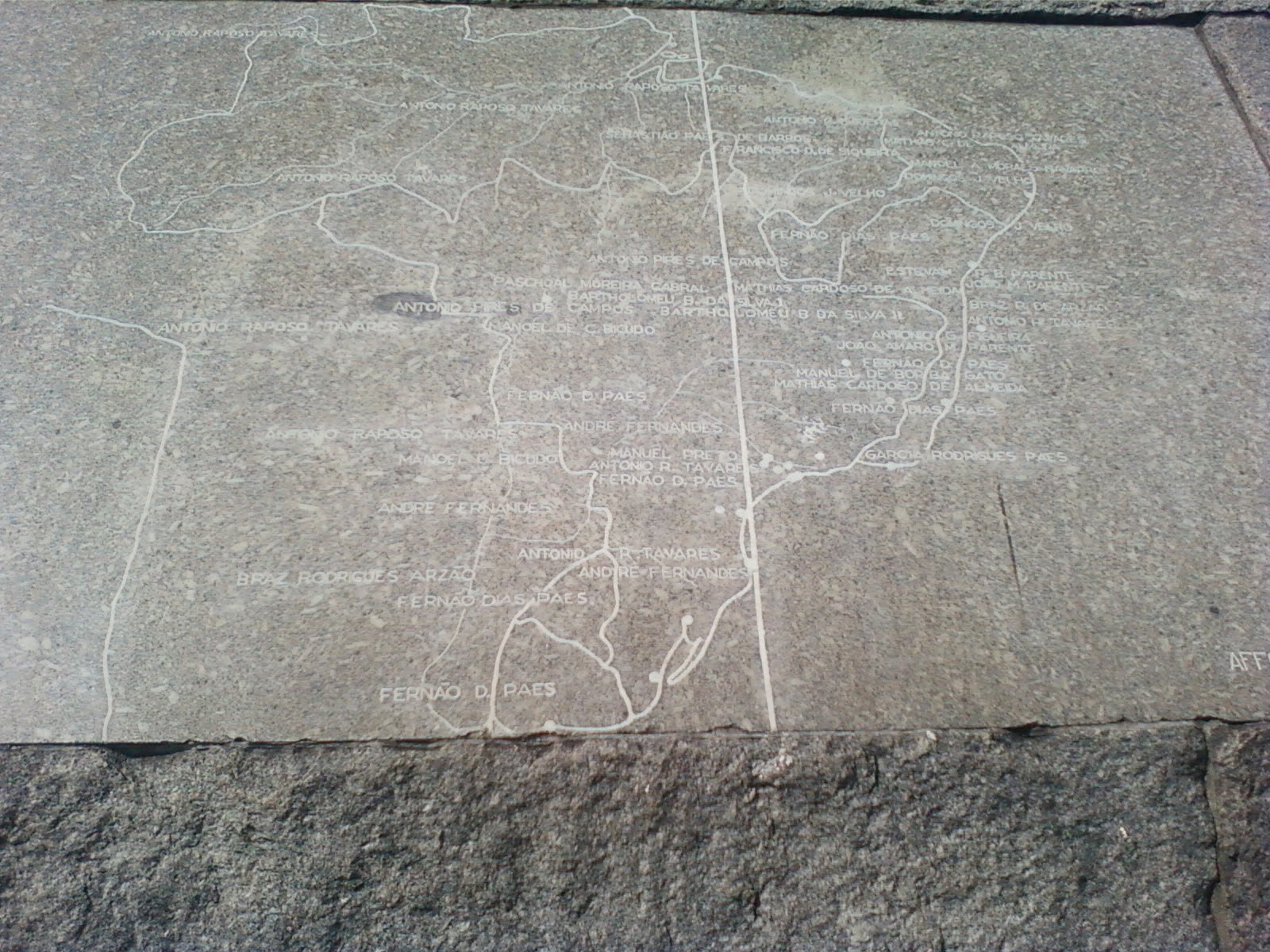 A obra foi instalada no sentido de entrada dos bandeirantes pelo interior, no eixo sudeste-noroeste. Na frente do monumento, um mapa de Afonso Taunay, esculpido no granito, mostra o roteiro das expedições com os nomes de alguns bandeirantes famosos, entre eles Fernão Dias, Anhangüera, Borba Gato e Raposo Tavares.